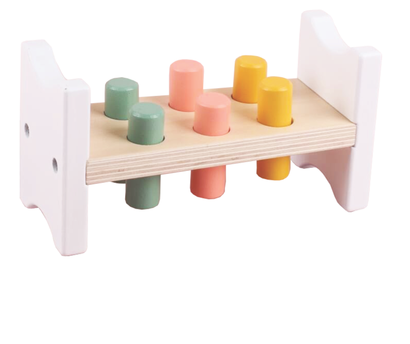 O Bate Martelo é uma linda bancada de madeira em tons candy colors 6 peças coloridas e 1 martelo.