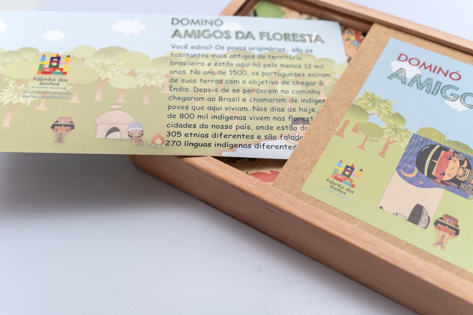 Esse jogo de dominó é super educativo. Além da diversão do jogo, ele estimula as crianças a conhecerem os animais que fazem parte de nossas florestas.