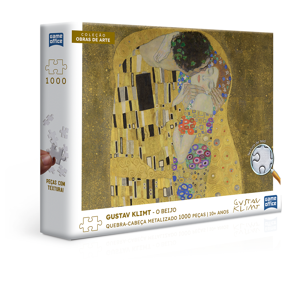 Aproxime-se das pinceladas de Gustav Klimt com esse quebra-cabeça de 1000 peças metalizado da Coleção Obras de Arte com textura de tela.